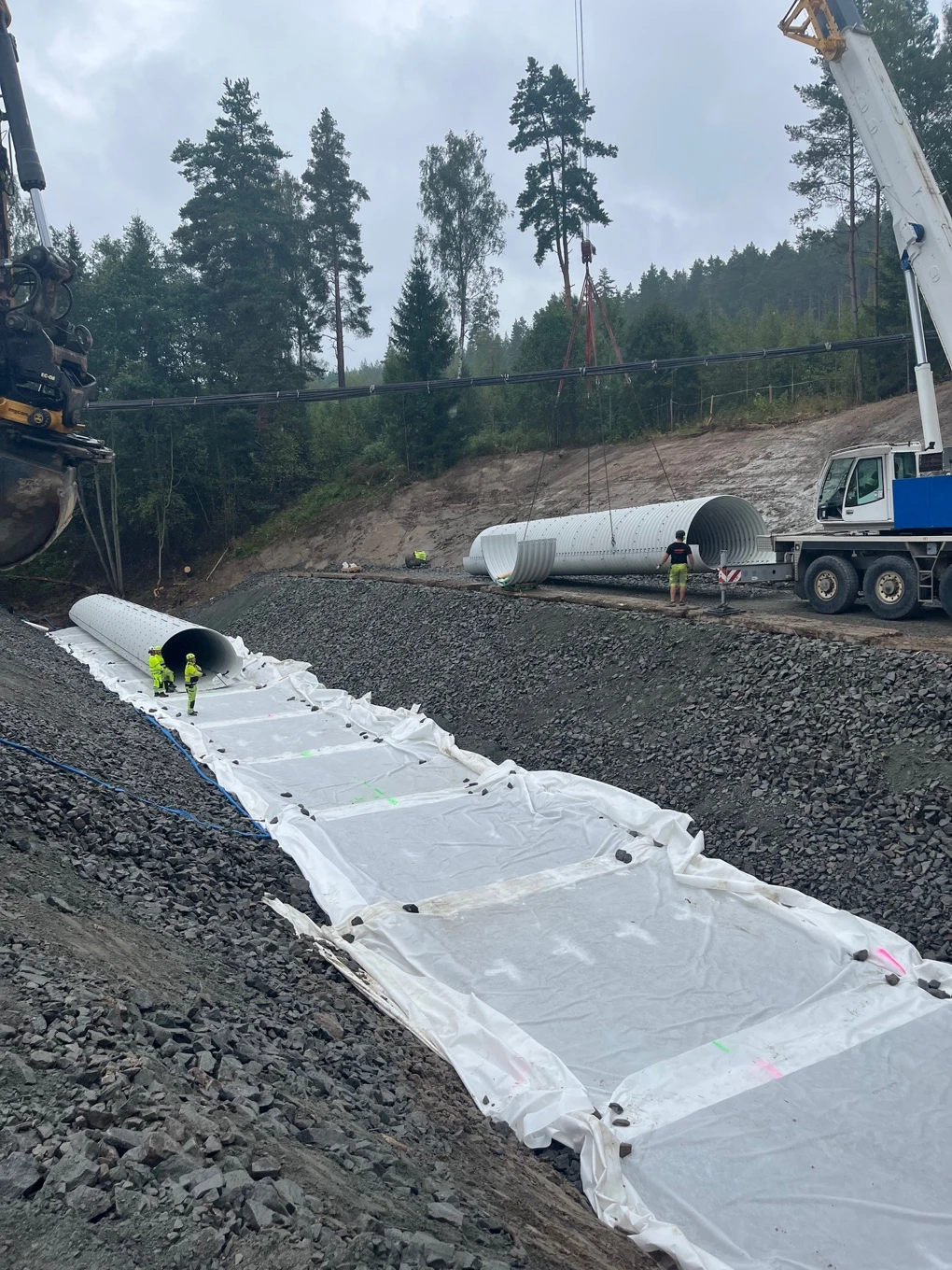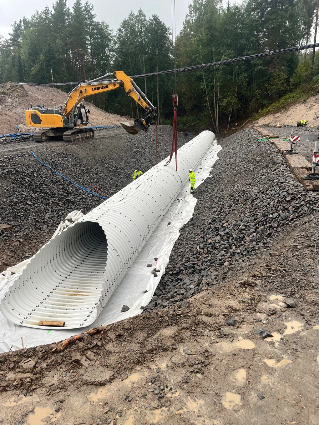 Den nya rörbron placerades 12 meter under vägens yta. Foto: Trafikverket
