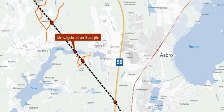 Bron över Bladsjön byggs som en del av projektet Dubbelspår Hallsberg–Degerön, den sista etappen på sträckan mellan Hallsberg och Stenkumla. Projektet ingår i godsstråket genom Bergslagen och ska förbättra punktligheten, öka trafiksäkerheten och möjliggöra fler tåg och hållbara transporter.
