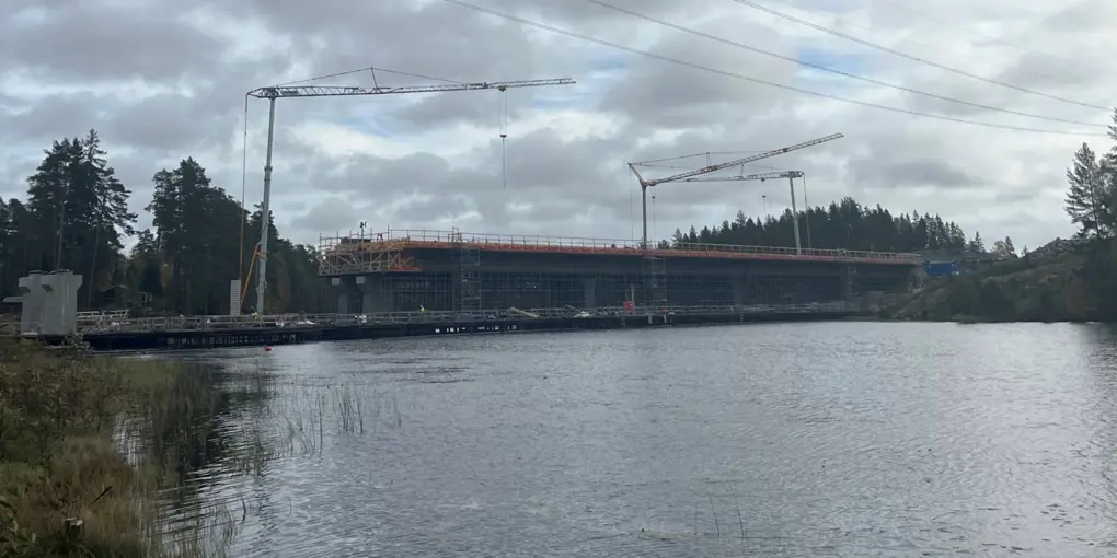 Arbetet med järnvägsbron över Bladsjön går in i ett nytt skede. Under några dygn i slutet av oktober genomför Trafikverket gjutningen av brons första del, ett moment som kräver kontinuerliga betongleveranser dygnet runt.
