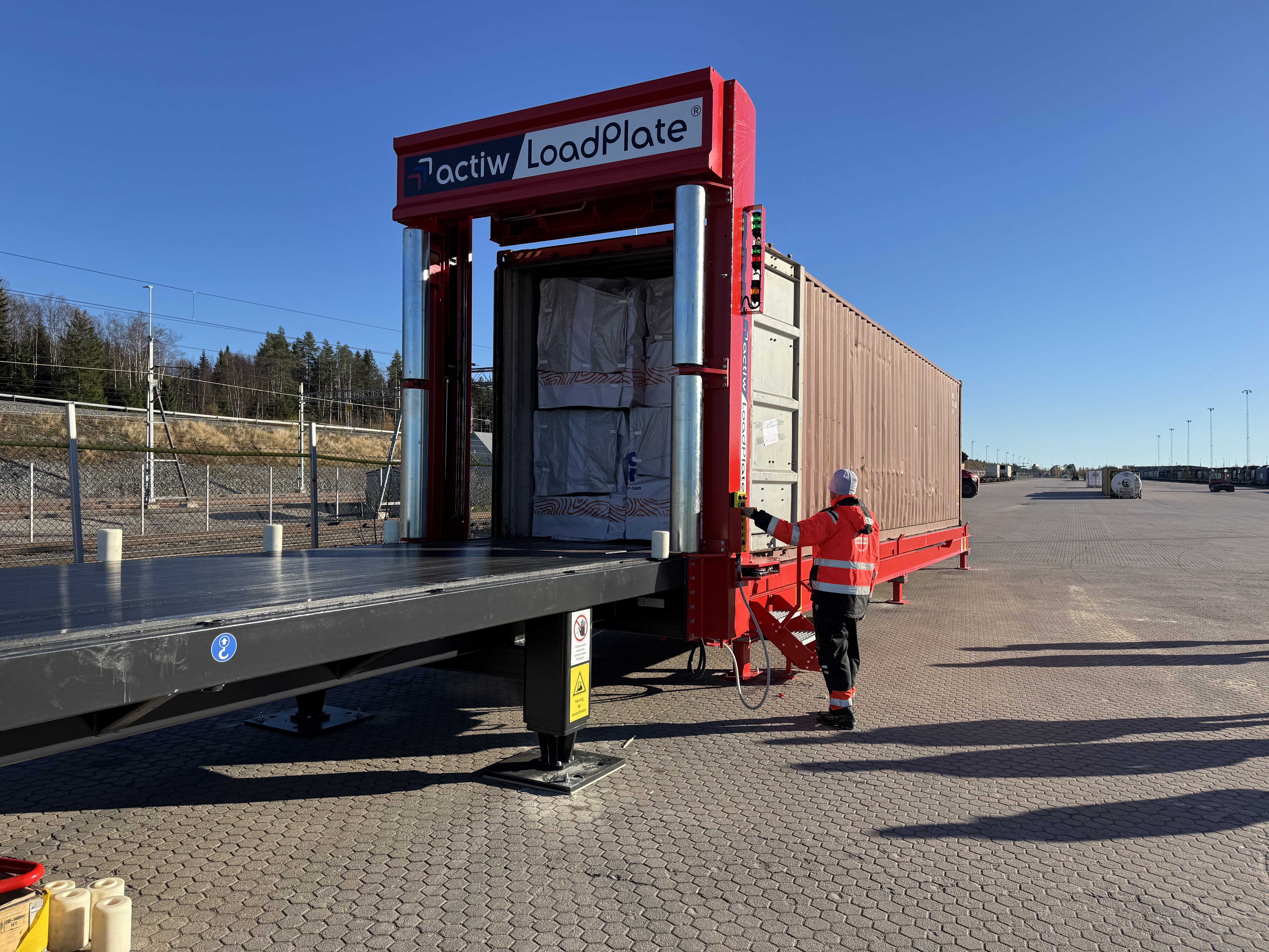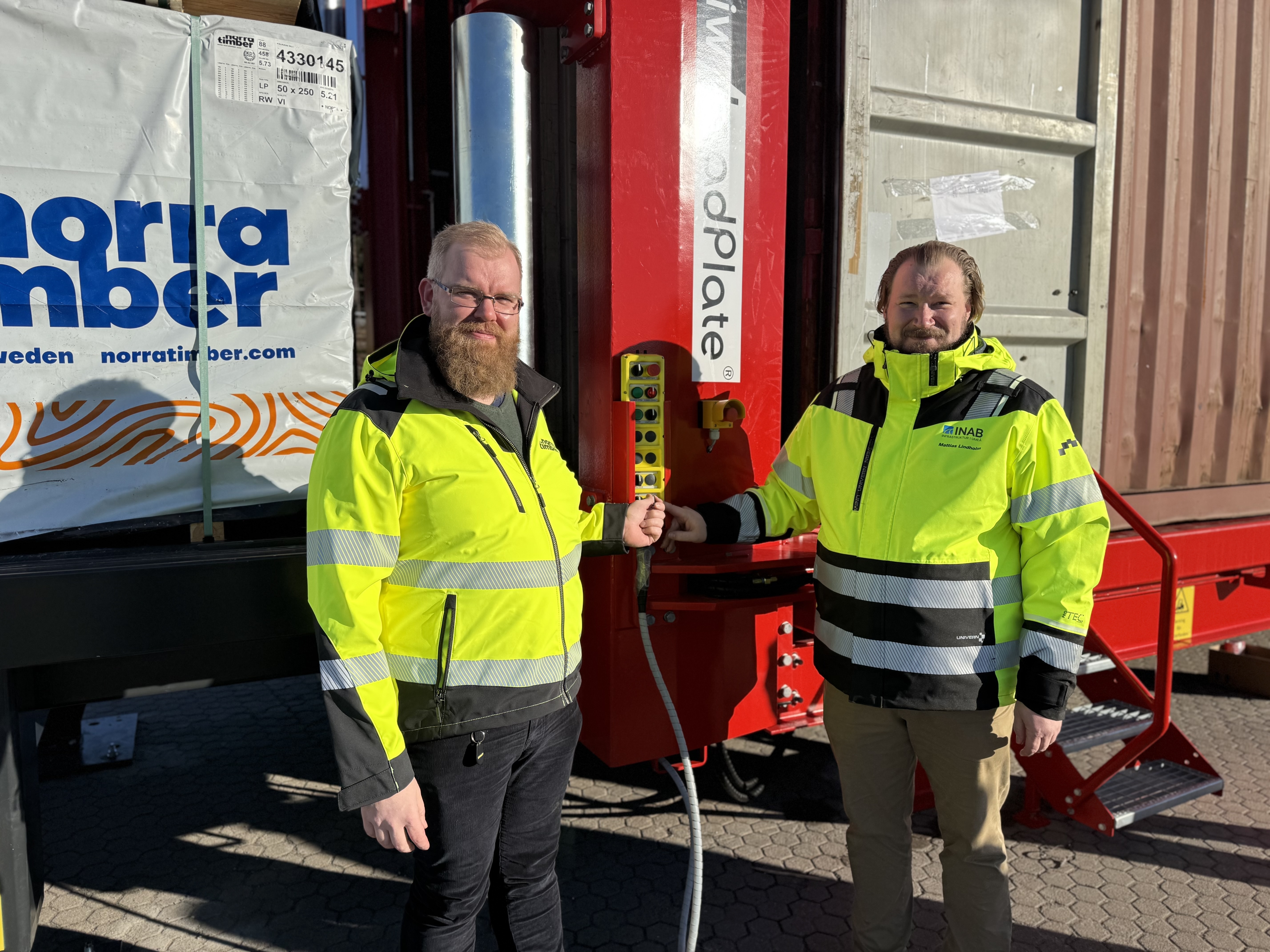 När den nya lastplattan invigdes i mitten av oktober stod ett stort lass sågad furu först i kön. Virket, från Norra Timber, skulle vidare till en kund i Saudiarabien. Den nya tekniken ska minska de långa lastbilstransporterna till hamnar i södra Sverige.