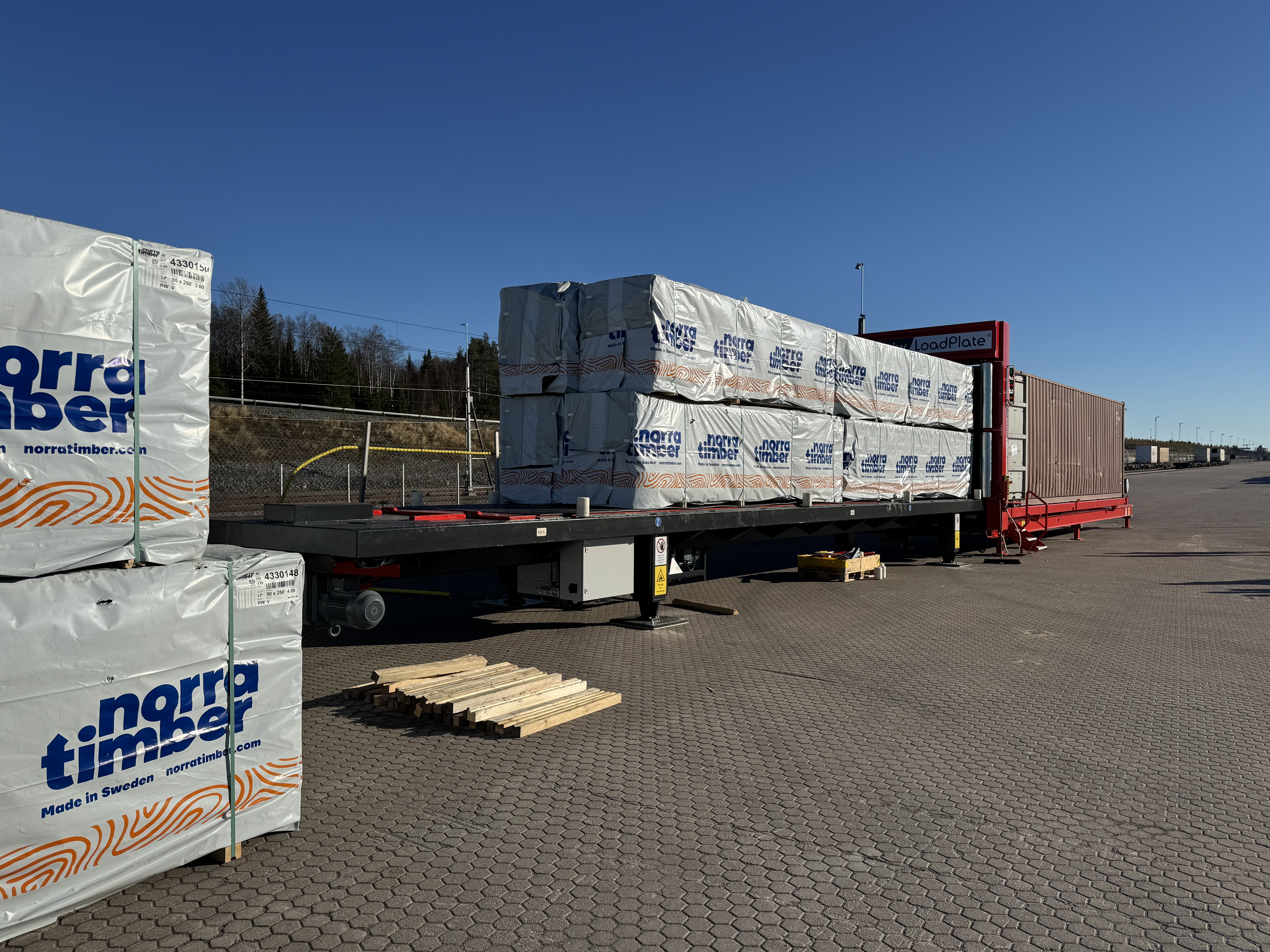 Norra Timber planerar att utvärdera lösningen under hösten. Om allt fungerar enligt plan kan lastplattan snart få fullt upp – företaget exporterar årligen motsvarande 1 200–1 500 containrar, ungefär 60 procent av sin totala produktion.