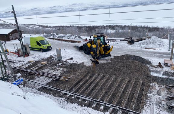 Sliprar läggs på plats vid återställningsarbetet på Malmbanan Foto: Trafikverket
