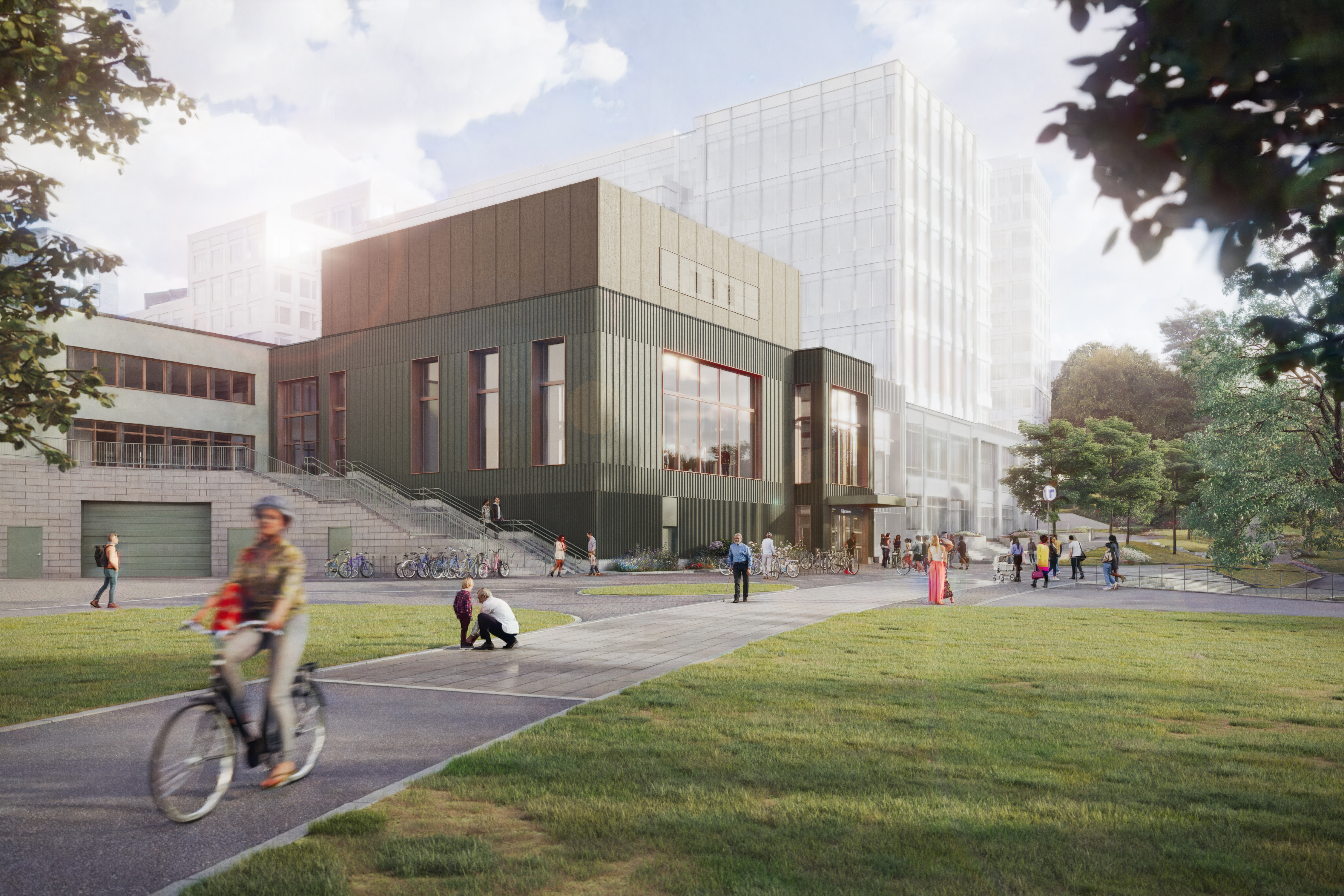 Visionsbild av entré till Gul linje i Trekantsparken i Liljeholmen. Bild: Region Stockholm/Sweco