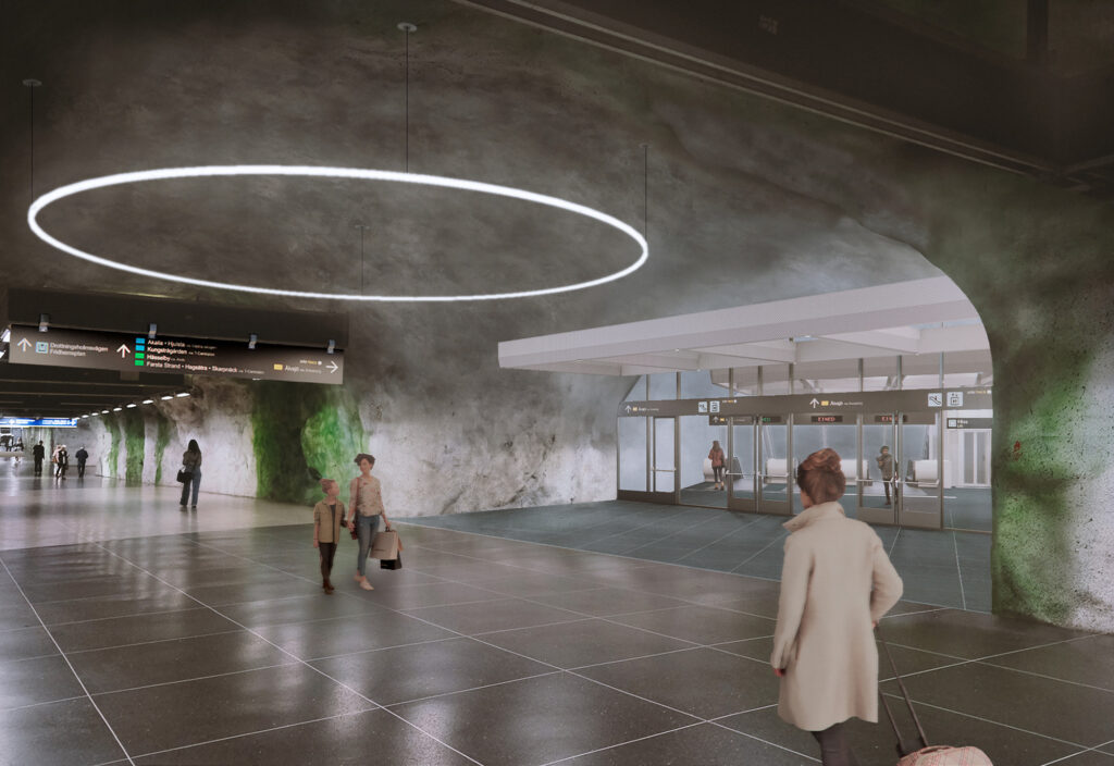 – Det beror på att vi har lite mindre berg ovanför den här stationen och genom att bygga två separata plattformstunnlar kan vi göra dem lite lägre, säger Bengt Nilsson, projektledare hos Region Stockholm.